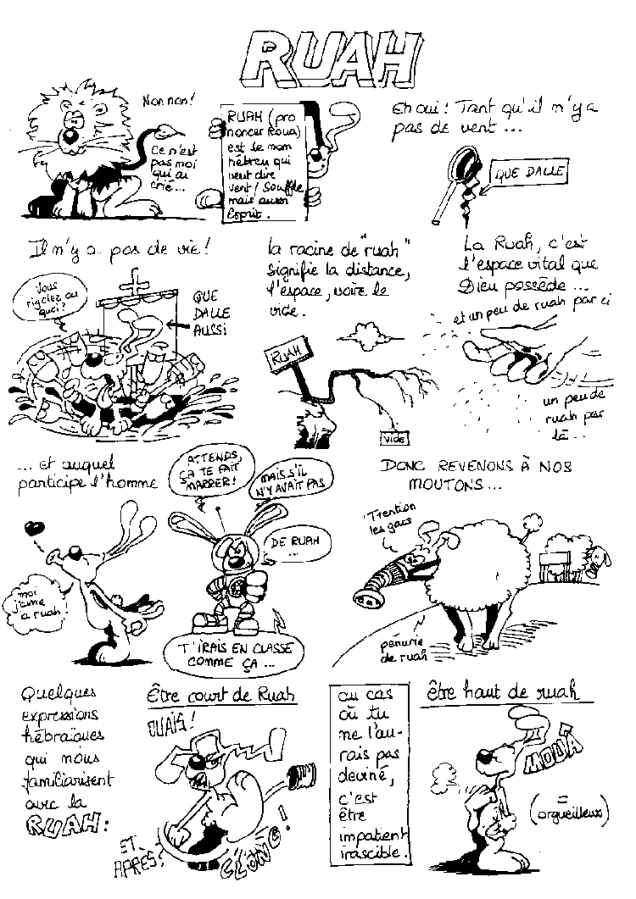 Et voici une vieille petite BD sur le souffle, que j’avais faite pour les confirmands de troisième (qui doivent avoir chacun 4 enfants depuis le temps…)