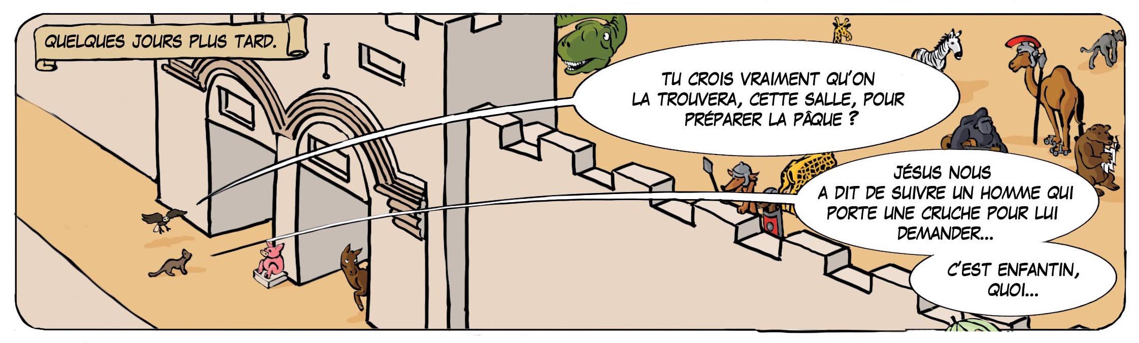 Mais revenons à l’histoire. Jésus envoie deux disciples (rien ne dit que ce sont Pierre et Jean)