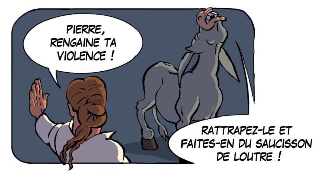 L’âne qui souffre, lui, a une parole de vengeance. C’est souvent la première idée qui passe dans la tête de quelqu’un a qui on fait du mal.