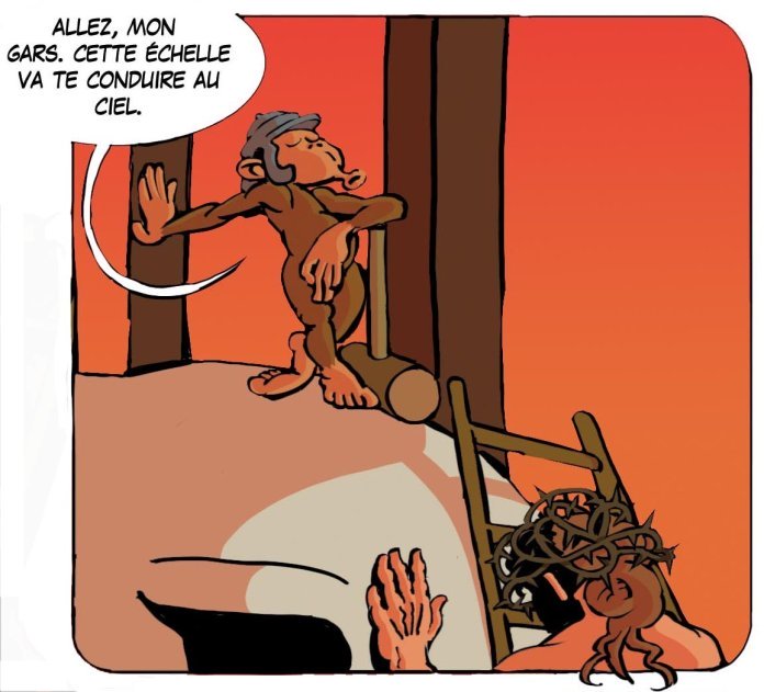 Le soldat a une attitude désinvolte. Il en a déjà crucifié d’autres, alors un de plus ou un de moins…