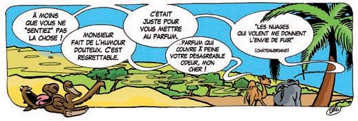 Le loup fait allusion à un gars qui a acheté une telle quantité de myrrhe il y a 33 ans. Pour ceux qui ont lu la première histoire de la trilogie, il s’agit de Cocochamel, le dromadaire qui est l’un des mages venus adorer Jésus à sa naissance et qui se parfume à la myrrhe.