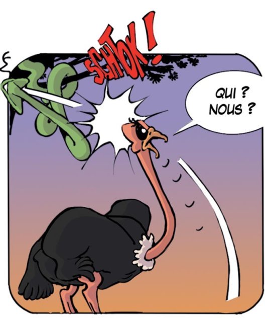 L’autruche se réveille par susceptibilité. Elle était toute découragée, et maintenant, elle se révolte à la parole de Jésus « votre coeur est lent à croire »