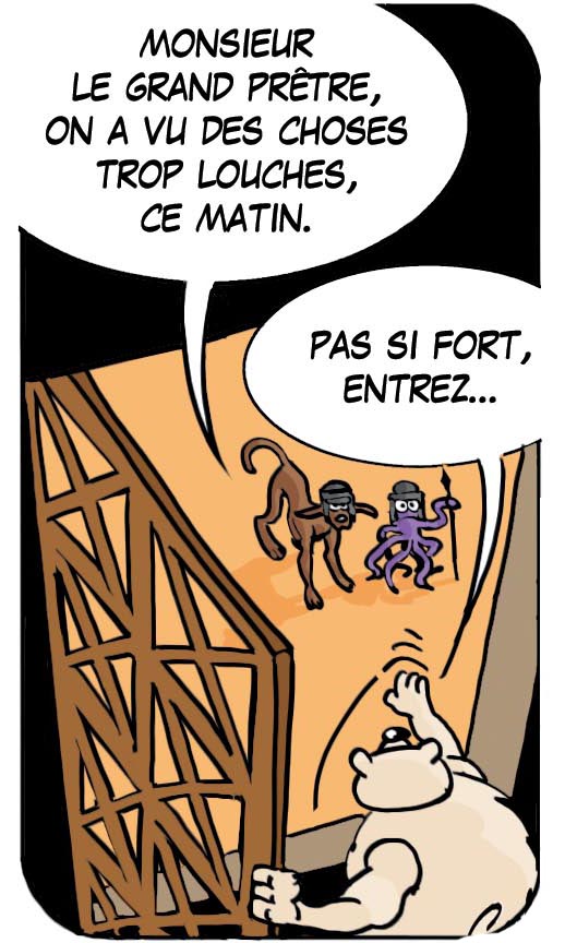 On peut constater que dès que des choses sont louches, on veut toujours les cacher, en parler à l’intérieur, à des personnes précises, qui vont aller dans notre sens. C’est pour cela que la bulle est entourée de noir, de ténèbres épaisses, au dessus de la fenêtre.