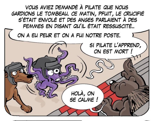 Lorsqu’ils voient que Jésus n’est plus dans le tombeau, ils ont une peur terrible. Un soldat est responsable de sa mission. Si sa mission échoue (par exemple, si un prisonnier s’évade), le soldat peut aller jusqu’à se suicider comme il est question dans ce passage des actes apôtres :