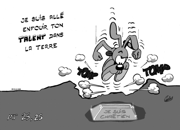 -Pas grand-chose. Le talent, ici, c’est la grâce du baptême ; je suis devenu Chrétien grâce à la mort et à la résurrection du Christ. C’est ça qui fait la richesse du talent reçu.
