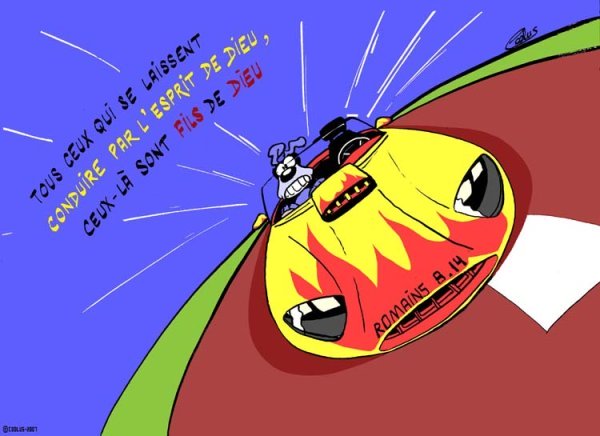 merci encore pour ce dessin très parlant et tellement vrai pour moi car après la fête de Pentecôte que nous venons de passer, je laisse le Seigneur prendre le volant et c’est vrai que c’est assez difficile à vivre car on ne sait pas oû l’on va et ce que Dieu va me demander, mais j’ai confiance en lui et c’est le meilleur qu’il veut pour moi et les personnes qui m’entourent, donc à la grâce de Dieu, et merci encore Coolus pour tes dessins. Françoise