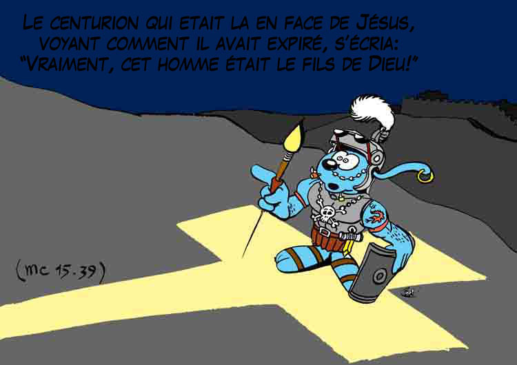 -Le centurion croit parce qu’il a vu COMMENT Jésus a expiré ; en vrai fils de Dieu. Il a du en voir expirer d’autres, maudissant la vie, les autres, Dieu. Jésus est mort en Fils de Dieu.