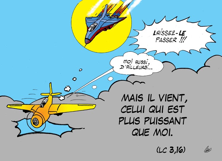 -Le baptême proposé par Jésus est d’eau ET de feu (si on regarde le sillage de l’avion de chasse)
