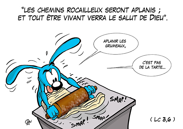 C’est l’histoire d’un lapin qui montre « pâte » blanche… Année C – 2ème Dimanche de l’Avent Baruch 5,1-9 Psaume 125 Philippiens 1,4-6, 8-11 Luc 3,1-6 Pour aller plus loin -Détails -Le prophète Jean-Baptiste a la mission de faciliter la route qui conduit à Jésus. Il demande d’y …