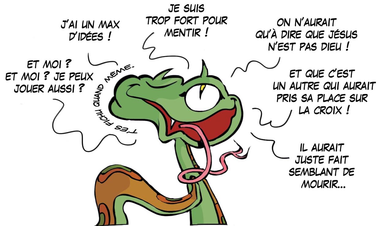 Sais-tu que la langue fourchue du serpent, sa langue coupée en deux, signifie qu’il a un langage double ? Il pense une chose et en dit une autre. Saint Jacques, dans la Bible, parle de la langue comme d’un gouvernail. Elle est toute petite mais elle dirige le bateau en entier. Chez nous, la langue …