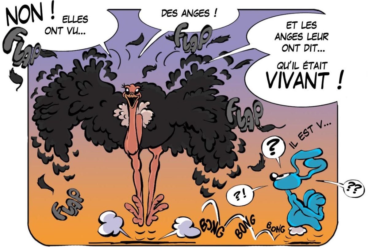 Lc 24,23 elles avaient même eu une vision : des anges, qui disaient qu’il est vivant. L’autruche imite l’enthousiasme des femmes qui sont allées au tombeau, mais elle ne fait pas sien cet enthousiasme (cf images suivantes). Le lapin est surpris, ses bonds sont de plus en plus petits. Saint Paul écrit, dans sa lettre aux …
