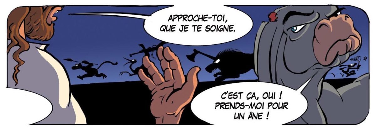Cette image a une double action, en avant-plan et en arrière-plan. L’avant-plan est tourné vers la droite, et montre la bonté de Jésus, tandis que l’arrière-plan est tourné vers la gauche et montre la guerre, la violence. Entre les deux, il y a la main de Dieu. La main de Dieu n’arrête pas l’horreur de …