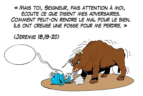 « Mais toi, Seigneur, fais attention à moi, écoute ce que disent mes adversaires. Comment peut-on rendre le mal pour le bien. Ils ont creusé une fosse pour me perdre. » (Jr 18,19-20) -J’écris ou j’apprends ce verset. -Je me répète ce verset plusieurs fois dans la journée et j’écoute ce que peut me dire le Seigneur dans …