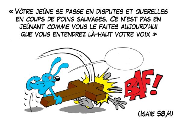 « Votre jeûne se passe en disputes et querelles en coups de poing sauvages. Ce n’est pas en jeûnant comme vous le faites aujourd’hui que vous entendrez là-haut votre voix » (Isaïe 58,4) -J’écris ou j’apprends ce verset. -Je me répète ce verset plusieurs fois dans la journée et j’écoute ce que peut me dire le …