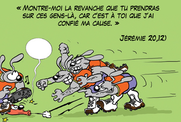« Montre-moi la revanche que tu prendras sur ces gens-là, car c’est à toi que j’ai confié ma cause. » Jérémie 20,12) -J’écris ou j’apprends ce verset.-Je me répète ce verset plusieurs fois dans la journée et j’écoute ce que peut me dire le Seigneur dans cette parole.-Je peux mettre en pratique ce verset, comme il me …