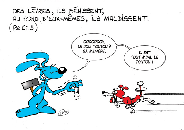 Un sucre… en morceaux ! Isaïe 49,14-15 Psaume 61 1 Corinthiens 4,1-5 Matthieu 6,24-34 Pour aller plus loin Détails -Visiblement, ce lapin cherche à faire s’approcher le chien dans le but de l’assommer sans se fatiguer. -Dans un être humain, il y a ce qu’on voit et ce qu’on ne voit pas. Il y …