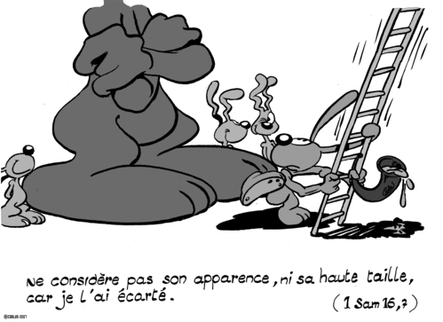 Eh non ! Dieu surprend. Il choisit le dernier qui n’a même pas été présenté car il garde le troupeau.