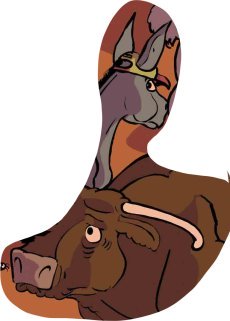 Ce sont ces animaux qui venaient à l’étable dans « Nuit blanche à Bethléem ». Ils sont toujours indisciplinés et représentent les chrétiens qui se crêpent le chignon entre eux et se divisent sur des broutilles alors que Jésus est en train de mourir devant eux.