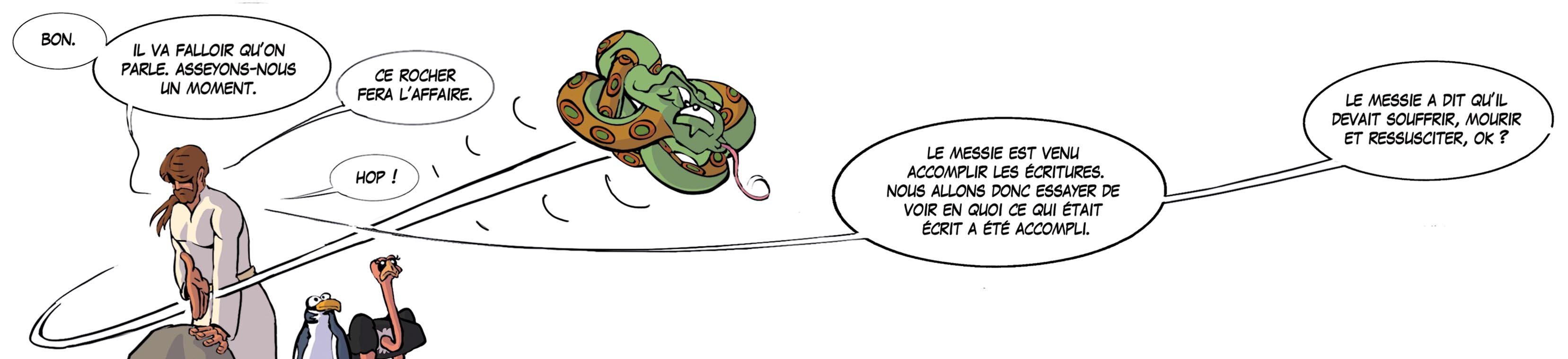 Jésus fait place nette en virant le serpent. C’est une manière de dire qu’il a le pouvoir sur le mal. Il a la médaille d’or au lancer de serpent.