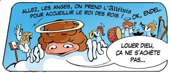 Et les anges se remettent à chanter la Gloire de Dieu, comme ils le faisaient dans l’album « nuit blanche à Bethléem », ce qui empêchait l’âne de la crèche de dormir…)
