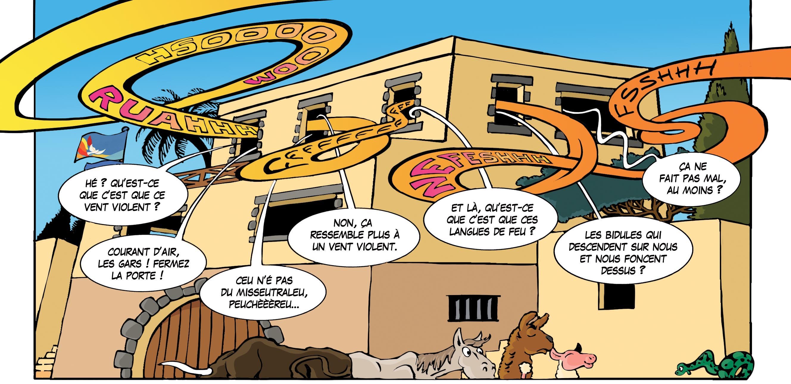 Si on regarde les onomatopées, il y a un bruit qui fait « RUAH ». Ruah (se prononce « rouar) », c’est le mot en hébreu qui veut dire souffle.