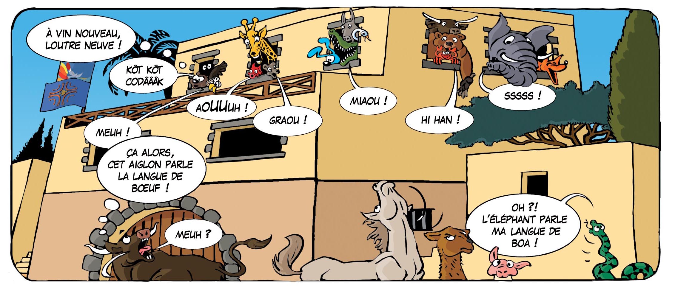 Pierre, la loutre, dit dans sa bulle « à vin nouveau, loutre neuve ». Il fait référence à ce verset :