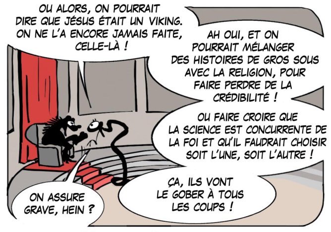 -3 dissocier foi et raison, les mettre en concurrence comme s’il fallait choisir soit l’une, soit l’autre. La foi et la science ne répondent pas aux même questions. On peut être un scientifique brillant et avoir foi en Dieu. De nos jours on voudrait nous faire croire que ceux qui ont la foi sont bêbêtes. Ils se raccrochent à leur foi par ce qu’ils n’ont pas les moyens de réfléchir. La foi n’est pas une adhésion aux dogmes sans réfléchir. Si Dieu nous a donné une intelligence, un sens critique, c’est bien pour que nous nous en servions.