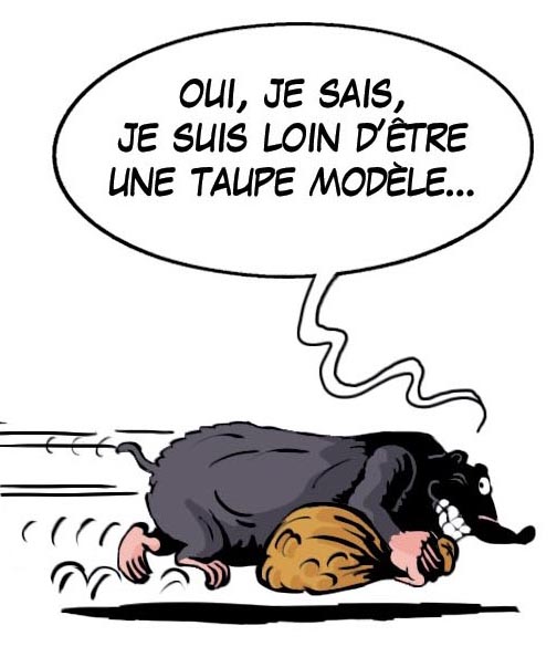 Encore un jeu de mot qui transforme « top model » en « taupe modèle ».