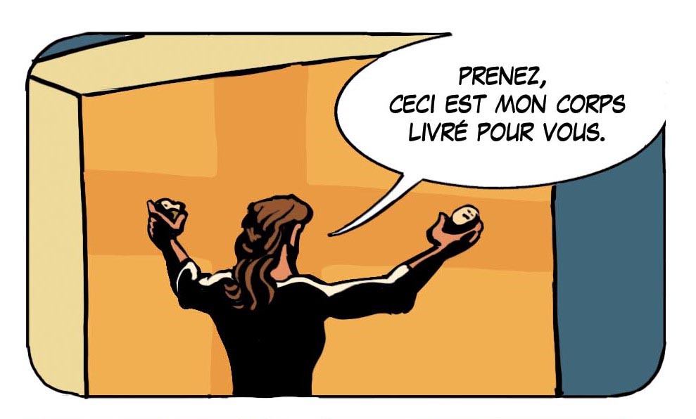 Jésus prend le pain mais ne dit pas la bénédiction habituelle :